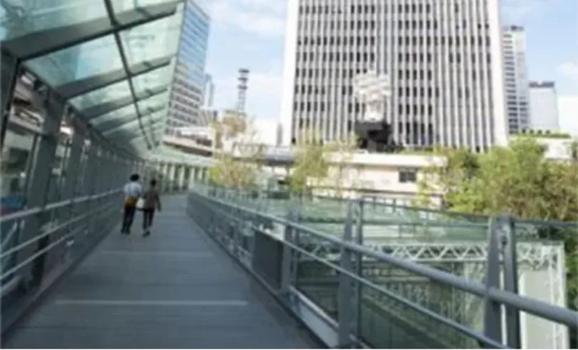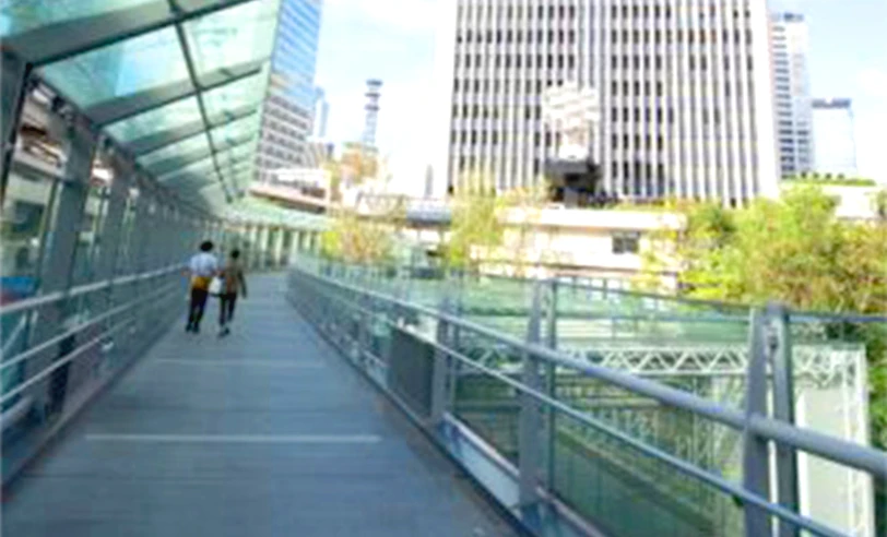 2階まで上がり、サウスタワーに沿って真っすぐに進むと歩行者デッキに出ます。