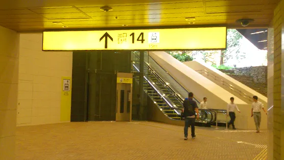 溜池山王駅改札正面のエレベーターをご利用の上、スロープを通り14番(または11番)出口エレベーターより地上へお上がりください。