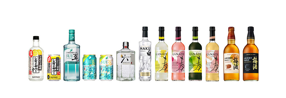 代表的な商品には、ソーダで割るだけで自宅で簡単に居酒屋の美味しいレモンサワーが愉しめる「こだわり酒場のレモンサワーの素」、居酒屋で楽しめるジンソーダを提案するサントリージン「翠」、日本の四季の恵みと職人技から生み出される国産プレミアムブランドのジン「ROKU(六)」、梅酒「サントリー梅酒〈山崎蒸溜所貯蔵梅酒ブレンド〉スーペリア」「サントリー梅酒〈山崎蒸溜所貯蔵梅酒〉リッチアンバー」、リキュール「KANADE〈柚子〉〈桜〉〈抹茶〉〈白桃〉」、ウオツカ「HAKU(白)」があります。 今後も、幅広いカテゴリーや業態で新たな価値をお客様に提供し、洋酒文化の創造に挑戦していきます。