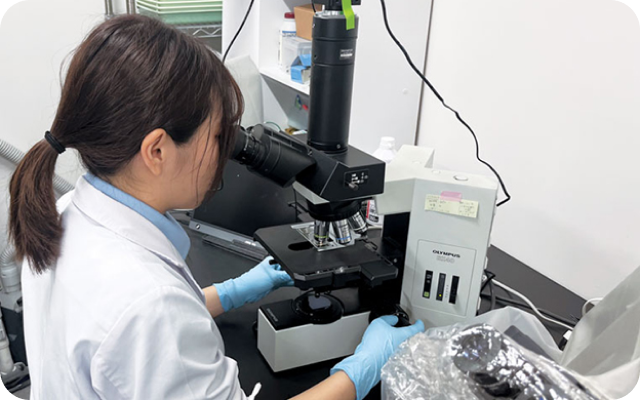 顕微鏡でウイルスや病原菌の有無を確認。