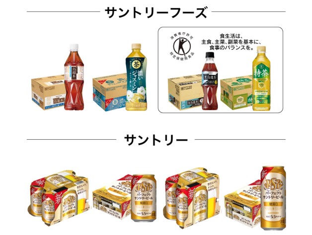 サントリーの対象商品は、「パーフェクトサントリービール」各種、ソフトドリンク各種です。