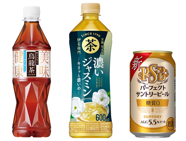 中でも特におすすめは、「サントリー烏龍茶OTPP」、「伊右衛門 濃いジャスミン」、「パーフェクトサントリービール」です。