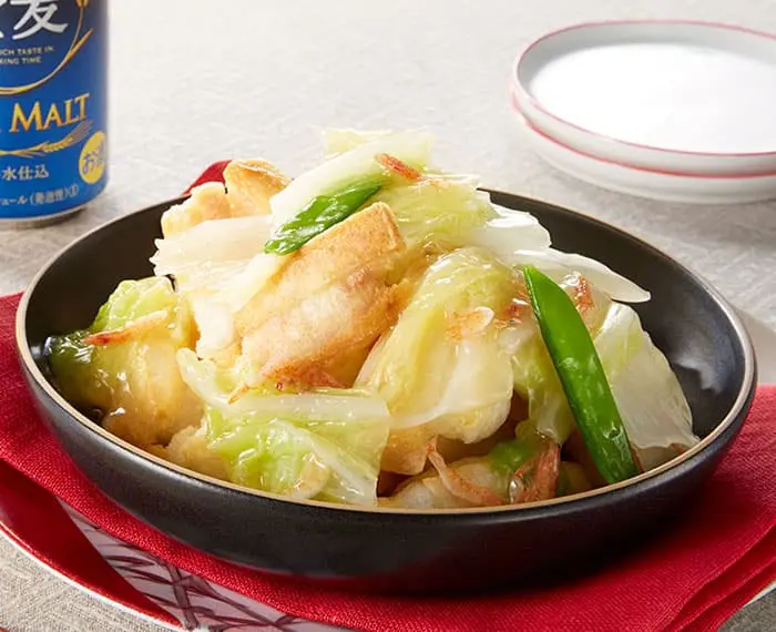 揚げた餅を器に盛り、上から白菜餡をかける。