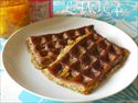 4.Lekueのワッフル型に流して500Wの電子レンジで5分加熱し、まだ生っぽい時は追加で1分ずつ加熱する。