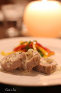 梨とマンゴーのフルブラで♪豚ヒレのマスタードクリームソース