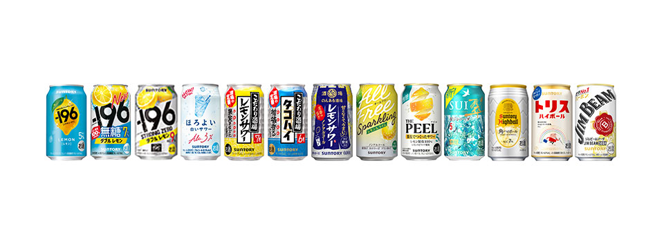 また、-196℃製法由来の浸漬酒により果実味をしっかり感じることができる、うまい無糖※2チューハイ「-196〈無糖〉」や、若者に向けたアルコール度数3%の“ほのかな甘みとやさしい飲み心地”の「ほろよい」、飲食店で人気に火がついたハイボールを自宅でも手軽に楽しめる「角ハイボール缶」、お店の味が手軽に缶で楽しめる「こだわり酒場のレモンサワー」、日常の食事に合う爽やかな味わいを気軽に楽しめる「翠ジンソーダ缶」、レモン果皮由来のみずみずしい香り、コクとほろ苦さ、豊かな余韻を香料・糖類無添加で実現した「THE PEEL」、 アルコール0.00%なのにお酒らしい味と気分を楽しめるノンアルコールRTDとして「のんある気分」や「のんある酒場」など、酒類・食品の各事業分野で蓄積した技術力を活かして新しい価値をもつ商品を開発してきました。