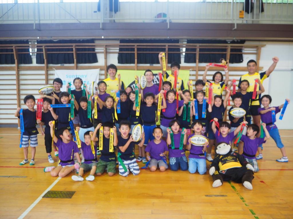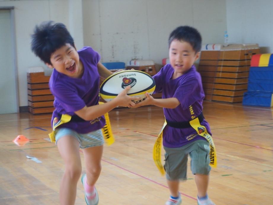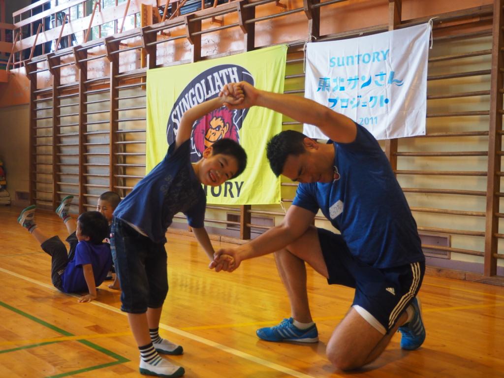 8月6日・7日の二日間、サントリーグループの東日本大震災復興支援「サントリー東北サンさんプロジェクト」の一環として、いわき市立平第四小学校・平第五小学校の児童クラブに通う子どもたちを対象に、サントリーのラグビーチーム「サントリーサンゴリアス」OBによるタグラグビー教室を実施しました。
