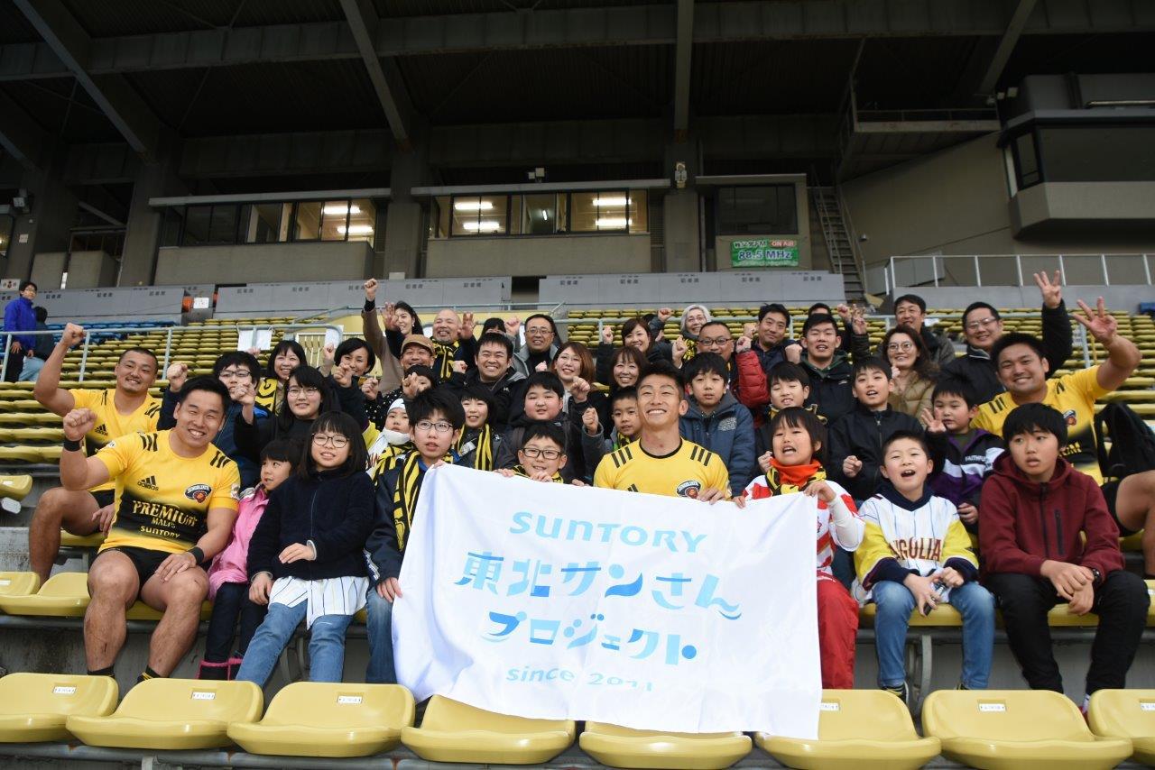 月22(日) に秩父宮ラグビー場で行われた、ジャパンラグビートップリーグ:サンゴリアス対日野レッドドルフィンズ戦に、東日本大震災で大きな被害を受けた岩手県の子ども達とその保護者39名を招待しました。