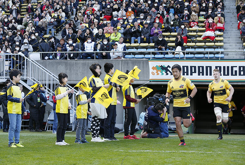 そしていよいよ迎えた試合観戦では、子ども達に花道キッズも体験いただきました。サンゴリアスフラッグを力いっぱい振って、出場する選手たちにエールを送っている姿が印象的でした。