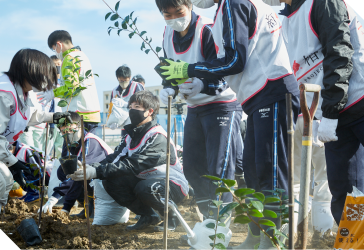 震災の津波被害を受けた未利用地を中心に、市花である「椿」の植樹を行っています。椿は、深く根を張る樹木です。その性質から他の樹種にくらべて何倍もの生育時間を要しますが、災害には最も強いタイプの樹種です。この受賞をいただき、奨励金で市内中学校に卒業記念植樹を行いました。たとえ時間がかかっても、椿のように深く根を張る人に育って、人生の荒波に耐えて欲しいと願っています。ありがとうございました。