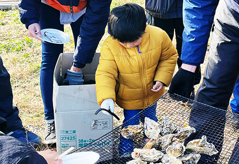 - カキ養殖場から出る竹廃材を材料にした竹炭「いかだ炭」を介して、竹の供給源である里山、竹材が活用されている里海、さらにいかだ炭の活用場所(農漁村、都市)をつないでいきたいと考えています。