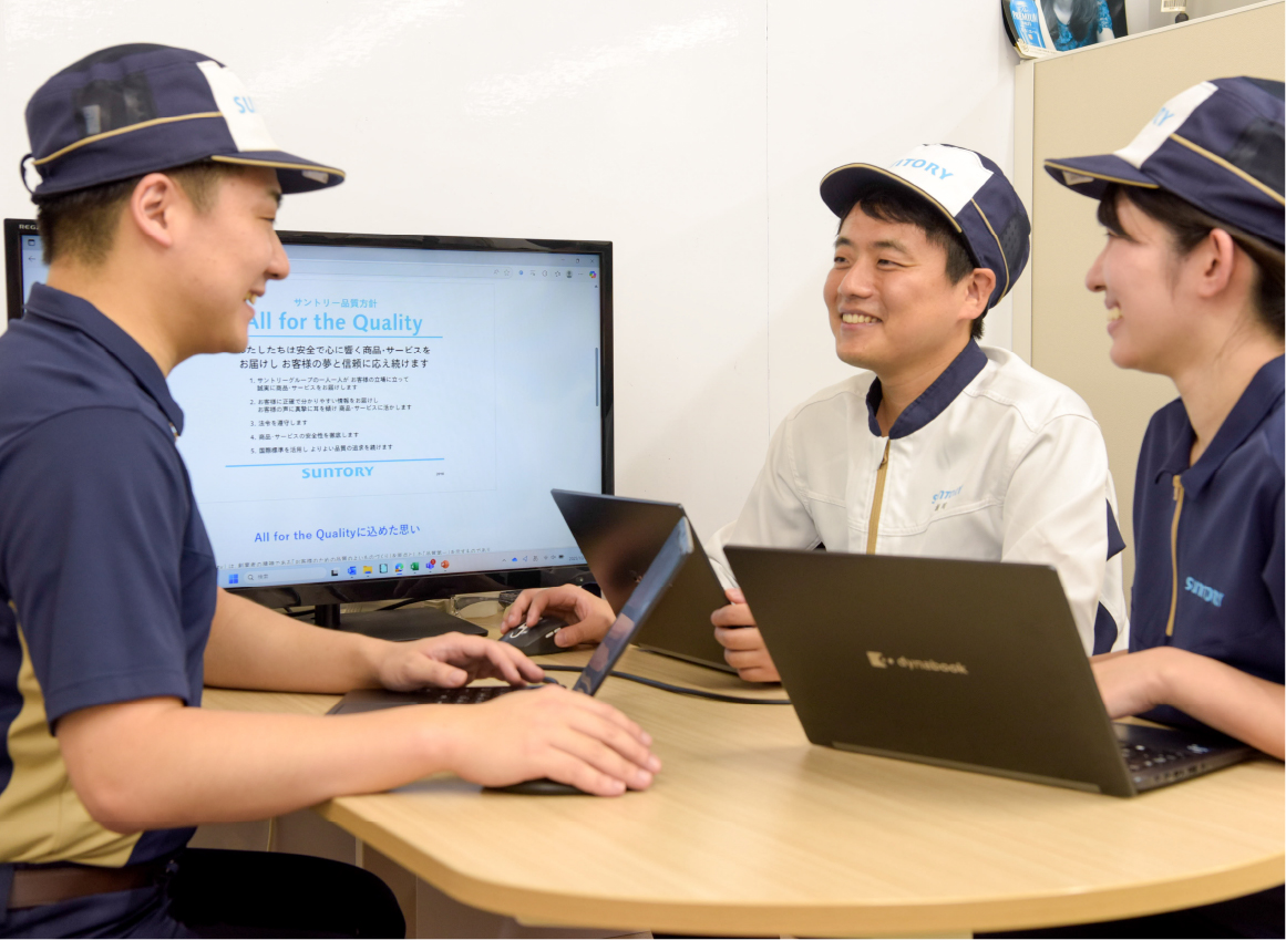 サントリーには、「お客様のための品質とは何か」を常に問い続ける文化があります。商品開発・マーケティング・生産など、部門の垣根を越えて連携し、現場と密にコミュニケーションを取りながら、常に「この設計で、お客様に最高のひとくちをお届けできるか?」を確認し合う。「All for the Quality」という言葉には、そんな“全社一丸”で品質に向き合う誇りが込められていると感じています。