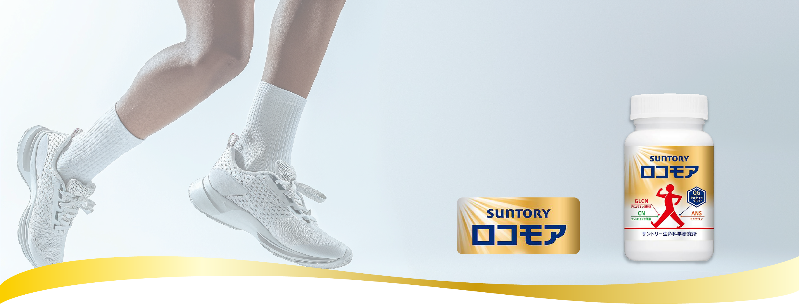 加齢とともに現れる脚の衰えに対し、サントリーは脚の「筋肉」と「ひざ関節」の両面に着目。ロコモアは、これらを同時にケアすることで、いつまでも力強く歩ける脚を支えています。