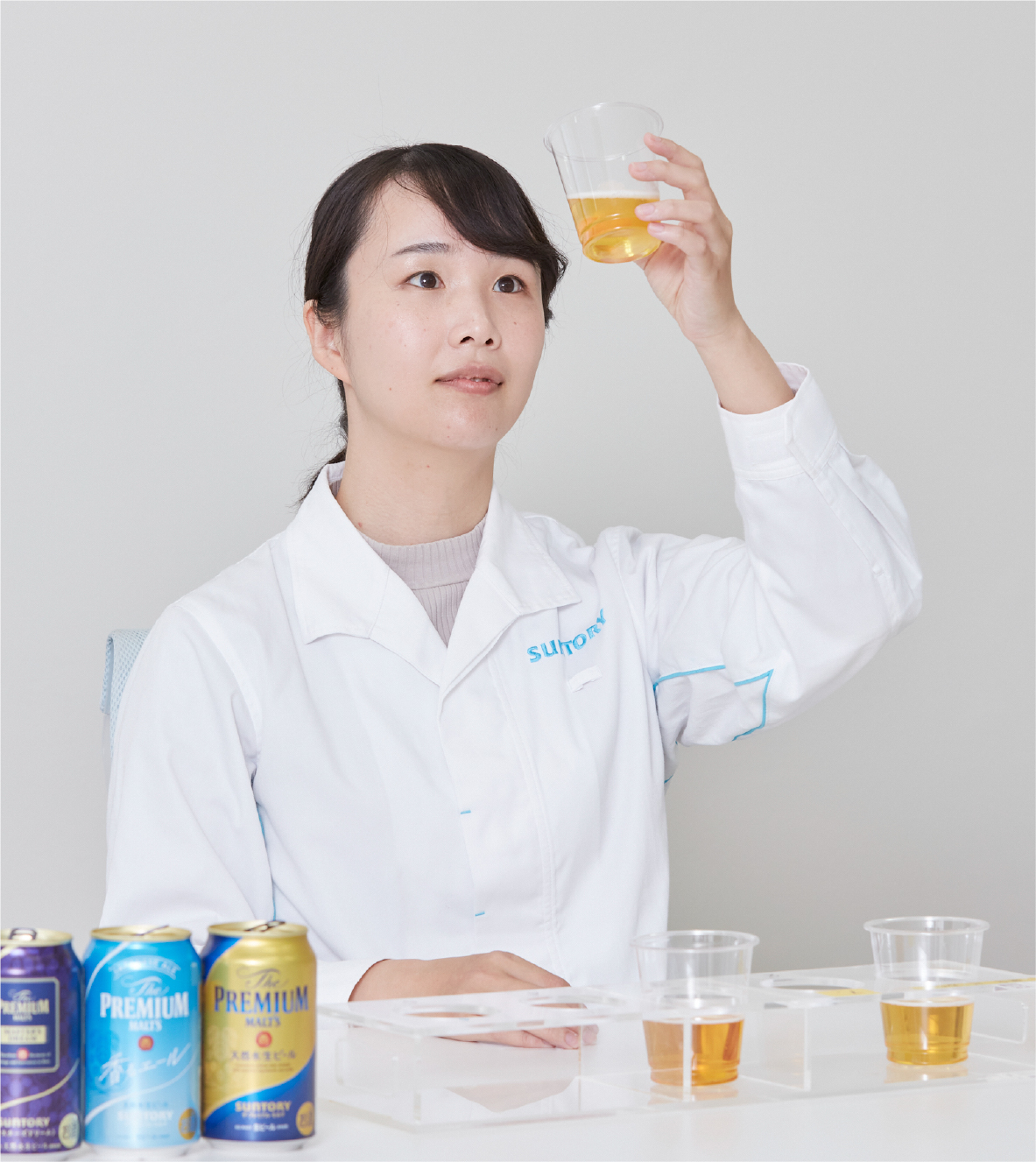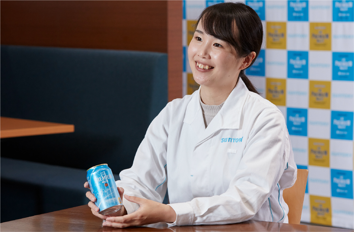 これがとても嬉しくて試醸品を周りのメンバーに共有していると上司の目にとまり、「この技術で商品開発をやってみないか」と言っていただけました。商品開発未経験の私にとってはまさに「やってみなはれ」の機会となりました。商品開発担当として初めての仕事も多く、戸惑うこともありましたが、先輩や工場の方々と共に試行錯誤し、狙い通りの香味を持つ、ザ・プレミアム・モルツ<プラチナ>として、お客様に届けることが出来ました。とても愛着のある商品で、お店で実物を見た時やお客様の反響を聞いた際には、涙が出そうになるほど嬉しかったです。