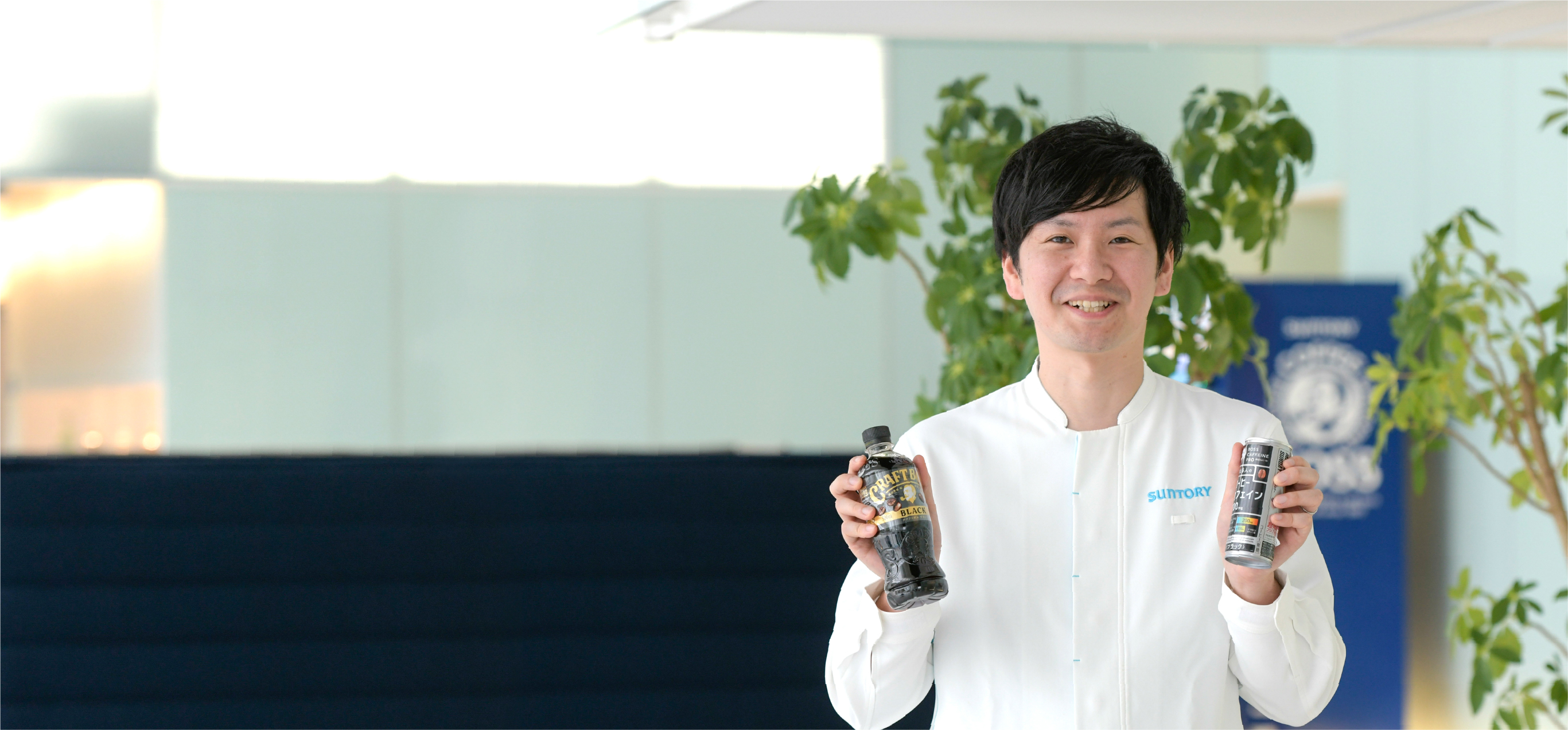 私はSBFジャパン商品開発部に所属し、クラフトボスブラック、ラテといったBOSSのペットボトル製品の商品開発を担当しております。お客様にとって「最もおいしく、手に取りたくなるコーヒーとは何か」、「もっとクラフトボスを好きになってもらうには何が足りないか」を追求し、中長期的にクラフトボスをどう進化させるかを考えています。