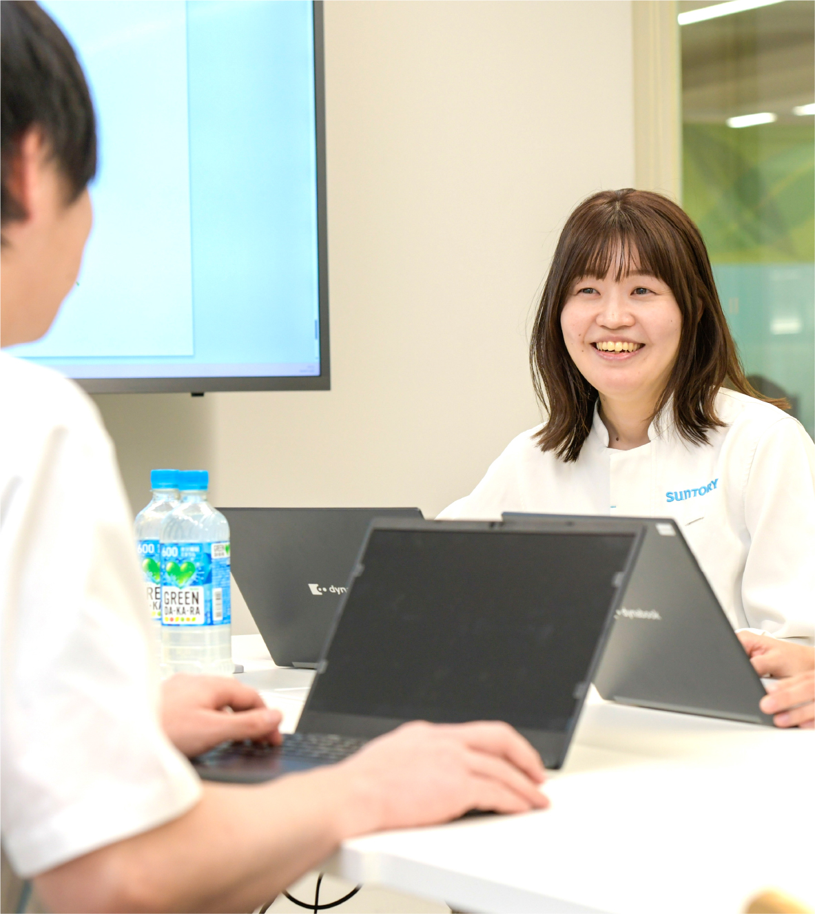 入社当時は、サントリースピリッツ商品開発研究部で「こくしぼり」や「-196」などの缶チューハイの商品開発を経験しました。2018年に現部署に異動し、天然水ブランドの商品開発(天然水スパークリングシリーズやヨーグリーナなど)を担当。2023年からGREEN DA・KA・RAを担当しています。