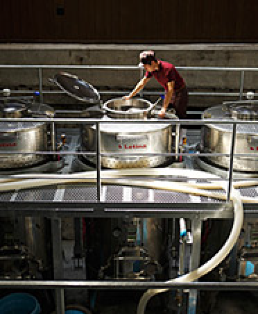 ワイン醸造では、風土・品種の特徴を引き出すために、造りたいワインのスタイルを実現するグラビティーフローシステム、粒をいためない除梗、選果システム、小型醗酵タンク等の最新の設備を導入し理想を追求しています。
