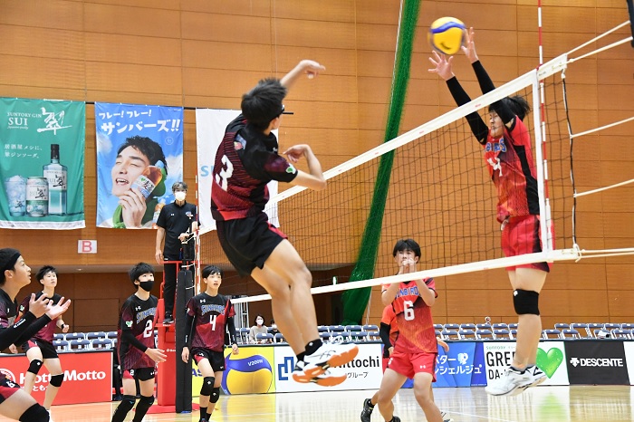 ジュニアチームの選手にとって、たくさんの保護者や観戦者の見守る中、Vリーガーが試合をする同じコートで試合が出来、特別な1日となりました。