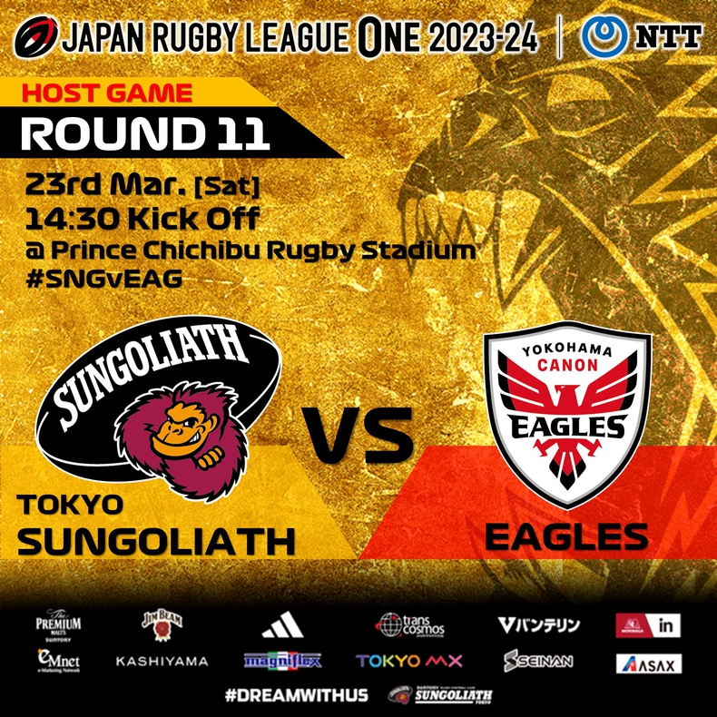 NTT JAPAN RUGBY LEAGUE ONE 2023-24 第11節 東京サントリーサンゴリアスvs横浜キヤノンイーグルス戦のご案内!