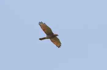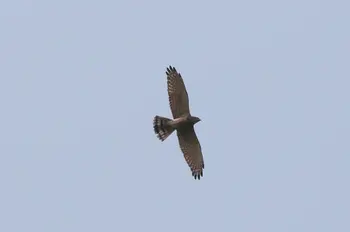 全長47cm(オス)、51cm(メス)。翼開長115cm。タカの仲間としては中型です。背面は赤褐色で、腹側には細かい横縞があります。全身黒褐色のタイプもいます。「ピックイー」とよく通る声で鳴きます。日本には夏鳥として渡来し、本州以南の低山地、平地の林と農耕地(特に水田)の入り混じった環境に生息します。里山の代表種といってもよいでしょう。食物はカエルなど両生類、トカゲ・ヘビなど爬虫類、大型の昆虫類の幼虫など。渡りをするタカとして有名で、愛知県伊良湖岬、鹿児島県佐多岬、沖縄県伊良部島などは、大群で飛ぶことが知られています。奄美・沖縄地方、八重山では越冬しているものも少なくありません。