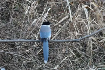 全長37cm。黒い帽子をかぶっていて、翼は短かく幅広で、尾は長い鳥です。黒とブルーグレイの姿をひらひらさせて水平に飛ぶさまはエレガントですが、カラスの仲間。となると当然、鳴き声は、この姿でこんな声で鳴くとは信じられない、という人がいるほど。オナガは中部地方より北の、本州だけにいます。従って、関西のバード・ウォッチャーにとっては、是非お目にかかりたい鳥の1つです。尾が長いのでオナガと呼ばれています。