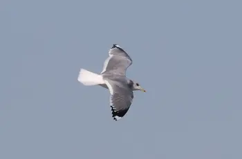 全長45cm。成鳥では灰色の背・翼の上面、白色の腹・尾、翼の先に黒っぽい斑点模様があります。日本には冬鳥として全国の海岸、河口、港など海で見られます。カモメは海と航海を象徴する鳥で、おぼれ死んだ水夫の魂が姿をかえたものといわれます。むやみに殺すことは不吉であり、家の窓にカモメがぶつかると良くないことが起こるとされています。カモメの仲間は世界で40余種、それぞれの特徴からセグロ(背黒)カモメとかシロ(白)カモメとかの名前がありますが、「カモメ」という名の種はこれひとつです。冬の河口などにたくさん群れていて、何でも食べてしまう「海辺の掃除屋さん」です。しかしこの習性が街をきれいにしているのも事実ですし、漁師たちもこの鳥が魚群の上に集まる習性を利用して、魚群探知を行うなど、大切にしています。