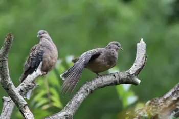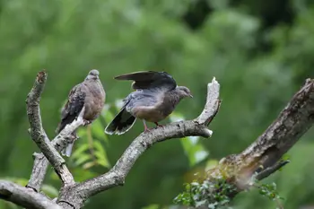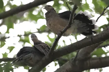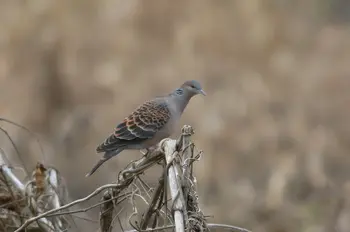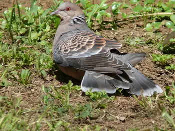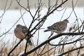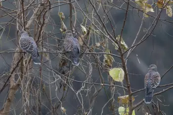 全長33cm。全国で繁殖していますが、北海道では夏鳥です。人家周辺の屋敷林、公園の林などの他、盛り場の街路樹に巣をつくり、子育てをして話題になる等、市街地でも見かけることが多くなったキジバト。巣は下から卵がすけて見えるほど雑で、樹上につくります。しかし体の割に小さめな卵を二つしか産まないので、熱がしっかり伝わり、ヒナがかえります。お寺や神社や公園などにたくさん群れているハトポッポではありません。あれはドバト。キジバトはブドウ色の体に、ウロコ模様の背中、首に青白黒のマフラーを巻いたような、おしゃれな鳥です。繁った樹の中から、「デデッポポー デデッポポー」という声をきいたことがありませんか。これがキジバトです。