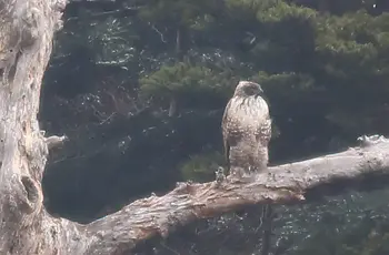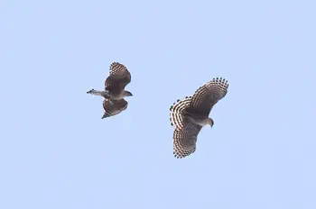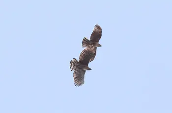 全長72cm(オス)、80cm(メス)。日本から中国南部、ヒマラヤなどに分布していて、日本ではほぼ全国で繁殖しています。山地の広葉樹林を生息地にしていて、小さなネズミ類からタヌキ、ヤマドリなど動物を食べています。ワシ・タカの仲間は、南極を除くほぼ全世界に分布し、からだの大きさは30cmくらいのものから1mを超すものまでおよそ220種をかぞえます。一般に体の大きいものをワシ、中型から小型をタカと呼んでいるようですが、はっきりした区別はありません。食物連鎖の頂点に位置するので、もともと個体数の少ない種です。クマタカは、日本ではタカと呼んでいますが、世界標準では立派なワシです。トビよりもひとまわり大きく、日本では昔から、オオタカなどと共に、鷹狩りに使われる種として有名です。ちなみにオオタカの獲物は主に鳥類で、ハト類、ムクドリ、カラス類など多様ですし、ハヤブサの獲物はキジ、ガン・カモ、サギ類、ハイタカはスズメ、ウズラ、ヒバリなどをとらえました。法律で捕獲禁止になった今でも、タカの仲間たちのヒナの密猟が絶えないのは残念なことです。