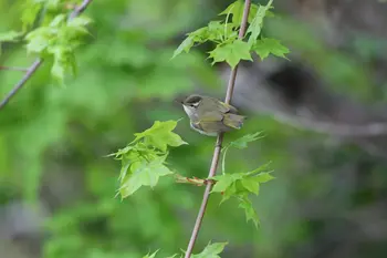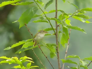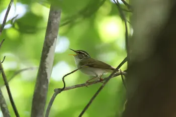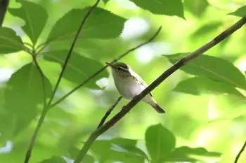 全長12.5cm。スズメよりずっと小さいムシクイの仲間の鳥。体の背側は暗緑色で、腹側は灰白色。白色の細い眉斑の他、頭頂に細長い淡色斑があります。横枝に止まり、葉や小枝につく虫をさがして食べます。さえずりは目立つ場所に止って行なうことよりも、樹中の枝にとまりながら、あるいは移動しながら歌うことが多いです。日本では夏鳥として渡来し、北海道から九州までの山地、低山地の、主に落葉広葉樹林に生息しています。「チヨ チヨ ヴイー」あるいは「チヨ チヨ ビィー」と聞こえる声でさえずりますが、これを「ツル チヨ ギミ―」、「めいぼくせんだいはぎ伽羅仙台萩」の鶴千代君と聞きなして、センダイムシクイです。