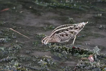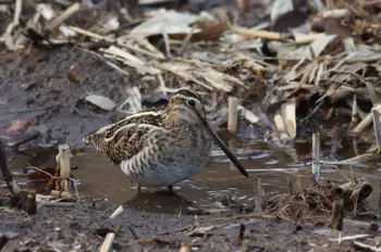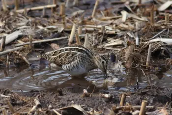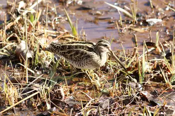 全長27cm。真っ直ぐな長いくちばしをもつジシギ(地鴫)の仲間。背面は黒褐色・黒色・褐色・白色などの細かい模様をしています。そのため枯草の中にいると見つけられないこともよくあります。泥地を好み、水田、蓮田、湿地、池沼畔などにすんでいます。シギの仲間ですが海岸の砂浜や干潟に行くことはありません。くちばしの先2cm程は、自由に動かすことができるので、泥中にすむミミズ類や昆虫類を探しては挟んで持ち上げ、飲み込んでいます。日本では主に冬鳥として本州以南で越冬しています。