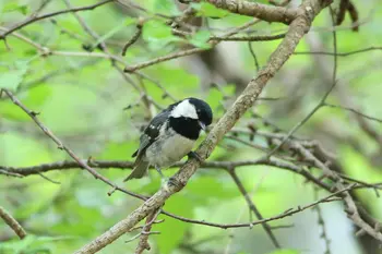 全長11cm。シジュウカラの仲間としては日本で最小。頬が白いことと喉の三角形の黒斑が特徴です。「ツピン ツピン・・・」とか、「チペ チペ チペ・・・」 とか高い声で、早口で繰り返し、さえずります。日本では北海道から屋久島までの山地の針葉樹林で繁殖し、秋冬には平野にまでやってきますが、特に針葉樹に好んで生息しています。細い枝先や葉先で活発に動き回り、虫や虫の卵を探して食べています。樹洞に巣をつくるので、人の架けた巣箱にもよく入ります。巣穴の直径は2.5cm。巣箱の半分より上に穴をあけておくとよいでしょう。