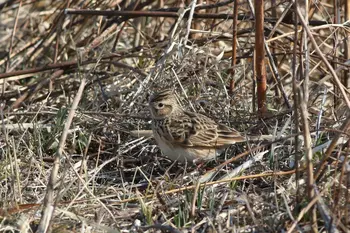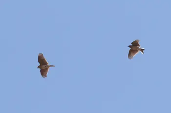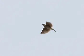 全長17cm。全身茶色で、頭には小さな冠羽があります。空中でさえずる他に、牧柵、石など周辺より少し高い場所に止まって、よくさえずります。日本全国に分布していて、繁殖もしますが、北海道では夏鳥です。河川敷や野原のひろいところで、太陽にとどけとばかり高く高く、鳴きながら舞いあがり、はばたくヒバリ。ヒバリは朝を象徴する鳥であり、西洋では、その歌声は清浄な愛をあらわすとされ、夜の愛をうたうナイチンゲールと対をなす鳥です。イギリスには「子ヒツジと共に寝てヒバリと共に起きる」ということわざがあります。