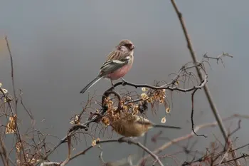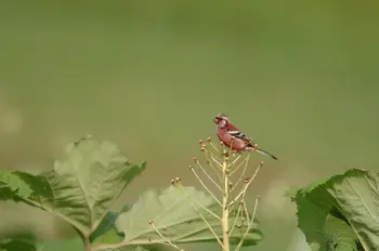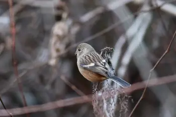 全長15cm。オスは赤く、メスは茶色をしています。尾が長い小鳥で、体の向きを変えながら「フィッ フッ」あるいは「ピッホー」と聞こえるやわらかい声を出します。日本では北海道と青森県の下北半島で繁殖、平地の低木林やヤブのある草原に生息します。冬は本州以南の山地の落葉樹林のヤブや水辺のアシ原でよく見られる鳥です。短めの翼を速くはばたき、波形を描いて飛びます。草原の赤い鳥といえばベニマシコのオス、メスはほんとうに地味です。