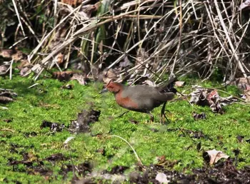 全長23cm。全身赤っぽい羽色で、腹から後方には白色と黒褐色の縞模様があります。太くてしっかりした脚をしていて、指も長いので、泥地や湿地も脚をとられることなく自由に歩き回っています。もちろん浅ければ水の中も平気です。アジアの熱帯地域に分布していて、その中で日本は最も北の分布地になっています。主に本州以南で繁殖しています(北海道では稀)が暖かい地方の湿地、水田などで見ることが多く、小さな昆虫類、貝類、イトミミズ類など小動物を食べています。一般的には夏鳥ですが、本州中・南西部では越冬するものもいます。また、亜種リュウキュウヒクイナは留鳥です。そのさえずりは「コン コン コン」あるいは「クォン クォン クォン ‥‥コココ‥」と聞こえ、次第に早口になります。この声は夕方から夜にかけてよく聞くことが出来ますので、夜間の訪問者を意識して、「戸を叩く水鶏(くいな)」として、古くからよく知られてきました。近年になって農薬が使用されるようになると、餌である昆虫類などが減少(作物例えば稲への害虫のみならず、いろいろな虫が殺されてしまう)して、個体数は少なくなり、夜の訪問者はいなくなりつつあります。