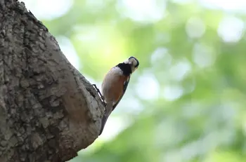全長14cm。背・翼の上面は灰色、腹は褐色。頭は黒色と白っぽい淡い褐色の模様です。体の大きさに比較し頭でっかちで、尾は短め。主に日本に生息し、中国の一部、朝鮮半島、済州島、台湾などでも繁殖しています。日本では小笠原諸島を除き、ほぼ全国に分布し、留鳥として繁殖しています。広葉樹林、殊に常緑広葉樹林の林を好み、東・北日本よりも西・南日本に個体数は多い。伊豆諸島や南西諸島にすむものには、色彩の変異があります。巣は、コゲラがあけた穴や小さな樹洞などにつくるのが普通ですが、人工の巣箱もよく利用します。