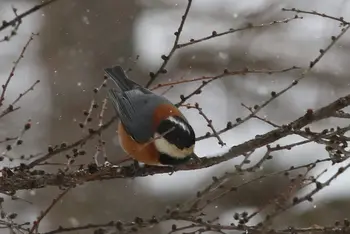 ヒナに与えるのは昆虫類やその幼虫ですが、堅い木の実も食べます。ことにエゴノキの実を好み、秋にはくちばしでたたいて穴をあけ、中身を食べている姿をよく見かけます。この実をたたく姿が愛らしいとして、かつては「おみくじ引き」「釣瓶引き」などをさせて見世物にしていたことがあります。現在は野生の鳥を捕獲することは禁止行為です。地鳴きは「ビィービィービィー」と鼻にかかった声。さえずりは「ツツピーン ツツピーン」とゆっくりした鳴き方。日本産カラ類の中では最もゆっくりしたさえずりをしています。