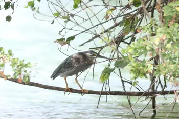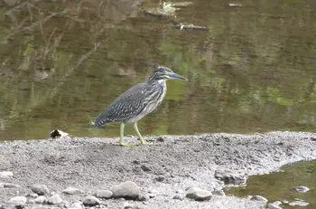 サギの仲間なので、ゆっくりはばたいて飛行し、その時の脚は尾をこえて後方に出ています。「キュウーッ」と鋭い声で飛行しながら鳴くことが多いです。