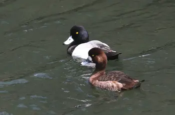 全長46㎝。潜水採餌のカモ類。オスの頭部は緑色光沢のある黒色。喉、胸、それに尾の周りは黒色です。背は白色の地に黒線が多数あり、遠くからは灰色に見えます。腹、脇は白色。飛んだ時の翼の上面に幅のある白帯がでます。翼下面は白色。メスは全身が黒褐色で、腹、脇は淡色です。顔の前方、くちばしの付け根に白色斑がでます。「クッ クッ」あるいは「クルッ クルッ」と聞こえる声を出します。