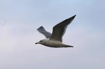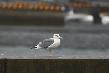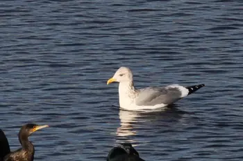 全長60㎝。翼を広げると150㎝にもなる大形のカモメの仲間。頭、顔から胸、腹などは白色、翼の下面も白色です。背と翼上面は灰色で、翼の先端部に黒白模様がでています。脚は桃赤色。くちばしは黄色で、下くちばしの先の方に赤斑があります。メスオス同色。冬羽では、頭、顔から首に褐色の縦斑がいくつも見られます。若鳥は全体に褐色で、淡色とのまだら模様になっています。