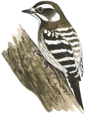 日本で一番小さなキツツキで、焦げ茶色の地に白い斑点模様があります。オスには側頭部に小さな赤い羽がありますが、羽毛を逆立てたときでないと見えません。日本では、北海道から沖縄・西表島まで、ほぼ全国に分布しています。