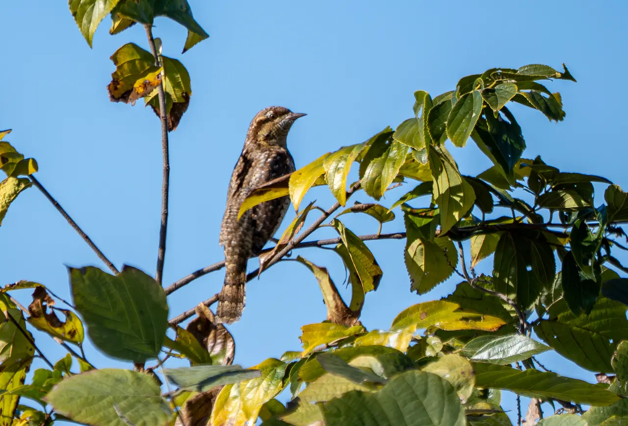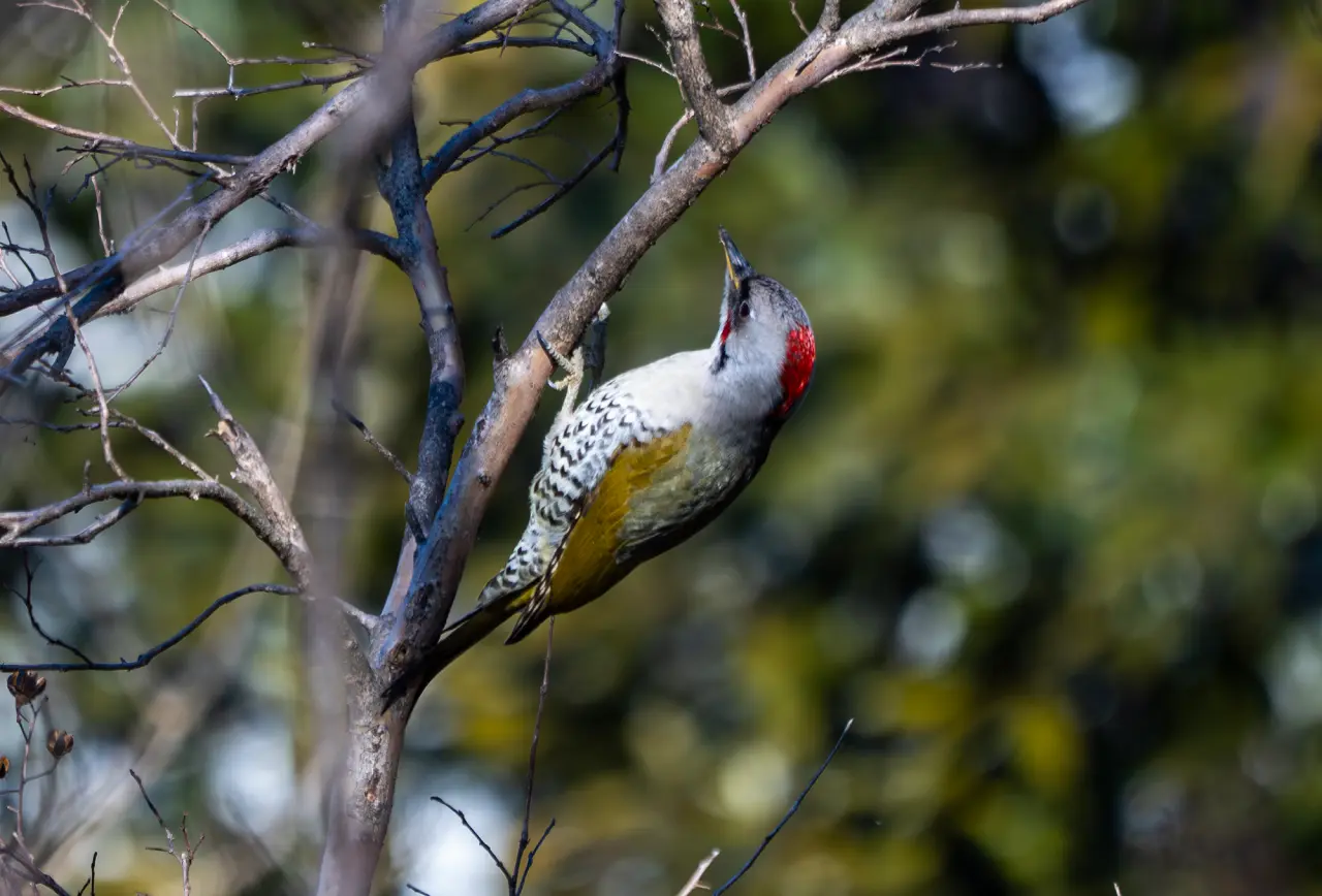 スズメよりもひとまわり大きなキツツキですが、幹に縦にとまることはなく、普通の鳥のように横枝にとまります。ほぼ、アリだけを食べ、ものすごく長い舌で絡め取って食べます。日本では北海道や東北で繁殖し、冬は本州以南でみられます。