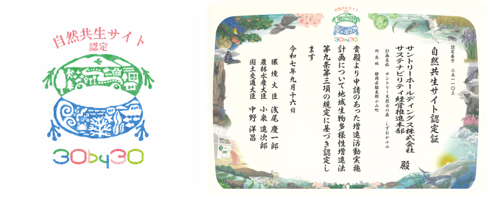 「天然水の森 しずおか小山」は2023年に「自然共生サイト※」に認定されました。