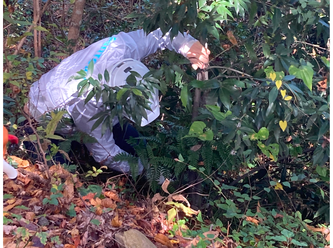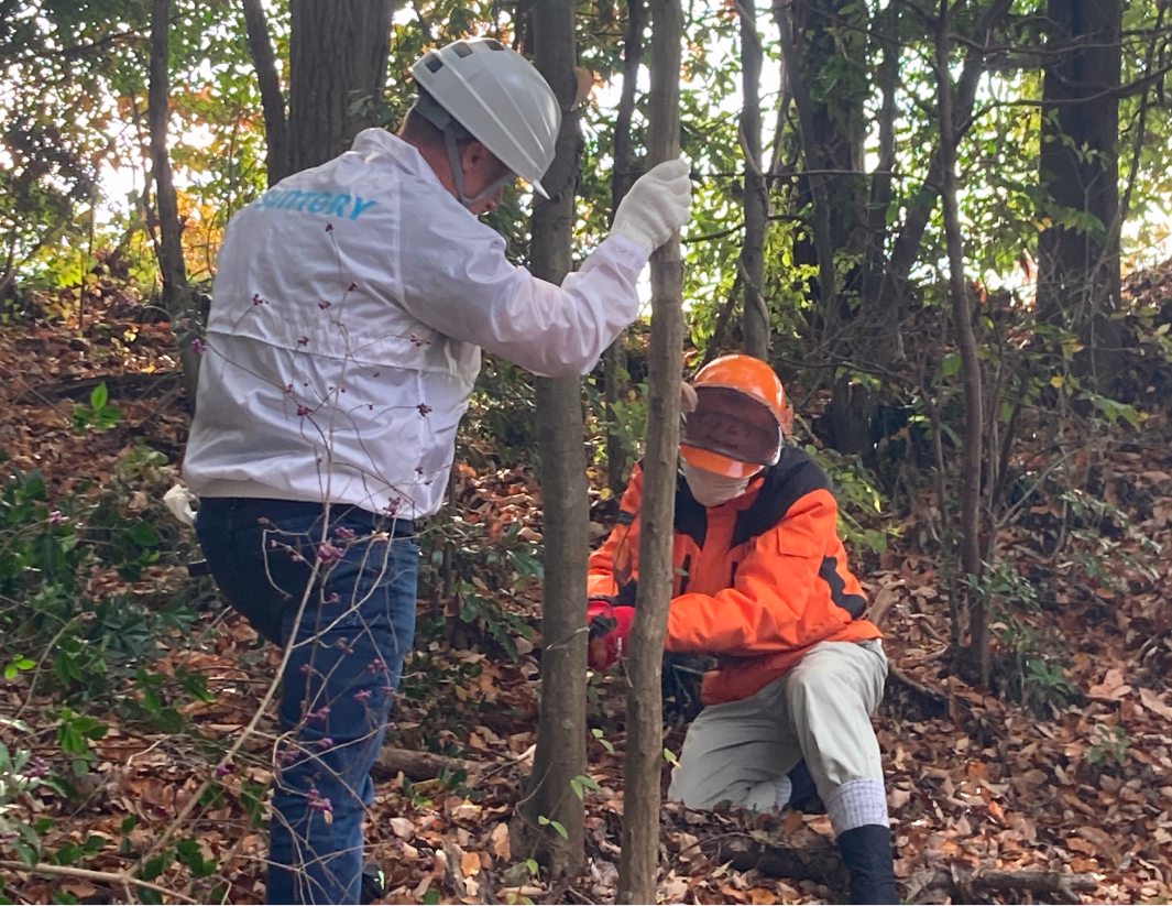 そこで、ヒサカキやアセビなどを地際で刈り取る作業を、社員の人事研修として実施しています。作業が終わると、見違えるように明るい森になるため、社員に人気の高い研修になっています。