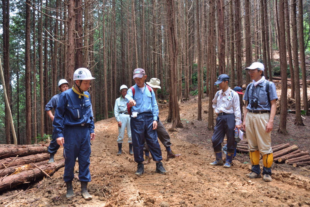 森を生き返らせるために、今後どのような整備を行うのか、木を伐って搬出する際にどのような機械・車両を使うのか。一つひとつ異なる森の将来像・理想像に合わせて、最も適した作業道をつくることを考えます。