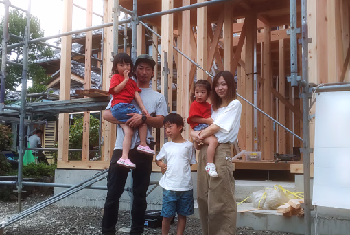 滋賀県では地産地消推進活動の一環として、県産の木材を使用した住宅建設を支援しています。今回の家も、その活動の延長として生まれました。宮大工でもある施主の高井さんは、自らの手でご自身の家を建築。マツイ工業、白谷製材、綿向生産森林組合、住友林業(株)森林技術部の協力のもと実現しました。