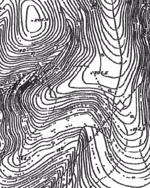 図1は、森林基本図と呼ばれる特殊な地形図で、縮尺は5千分の1です。私たちが一般に入手できる5万分の1や2万5千分の1の地図に比べ、10倍、5倍の精度を持っています。