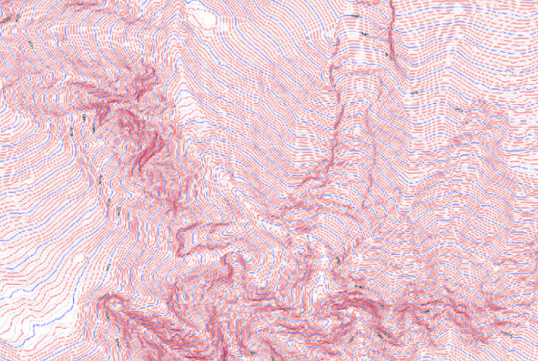 図2は、レーザー航測で得られた同じ場所の地形図です。5千分の1の地形図でも明らかにできない細かな地形の変化を、レーザー航測による地形図は鮮明に捉えています。1秒間に数万〜数十万回の頻度でレーザーを発射しながら、地表の様子を数センチメートル単位の密度で計測するレーザー航測だからこそ、高い精度を実現できるのです。