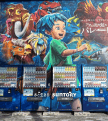 The Under the Midnight Rainbow characters emerge on a canvas that merges a wall with vending machines!