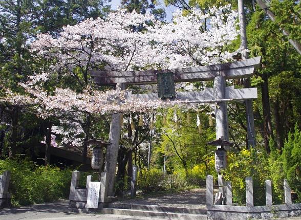 椎尾神社の鳥居にかかる「ソメイヨシノ」
