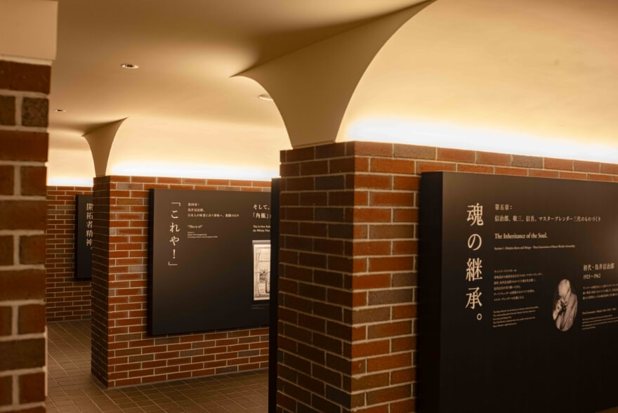 創業者・鳥井信治郎の想いから動き出した、創業期のものがたり(1F)から、1周ぐるりとめぐりながらウイスキーの製造工程がわかるミニツアー型展示(2F回廊)、そして、未来へ継承していく山崎のものづくり(2F)へと、日本のウイスキーの歩みを展示しています。